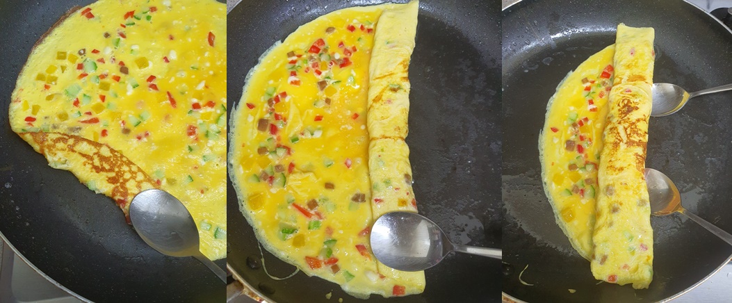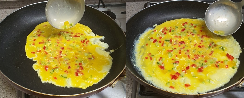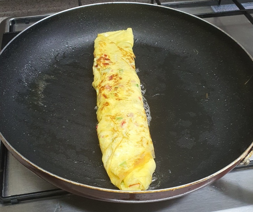 야채를 너무 많이 넣으면 계란을 말기가 어렵습니다.