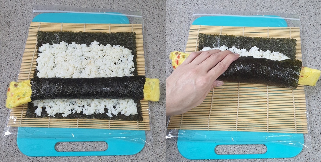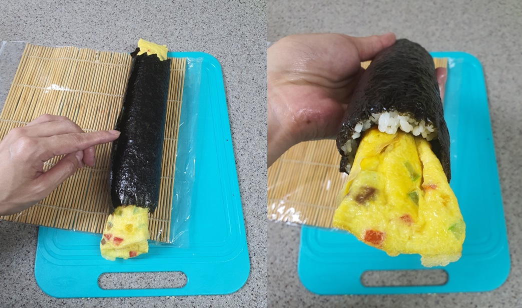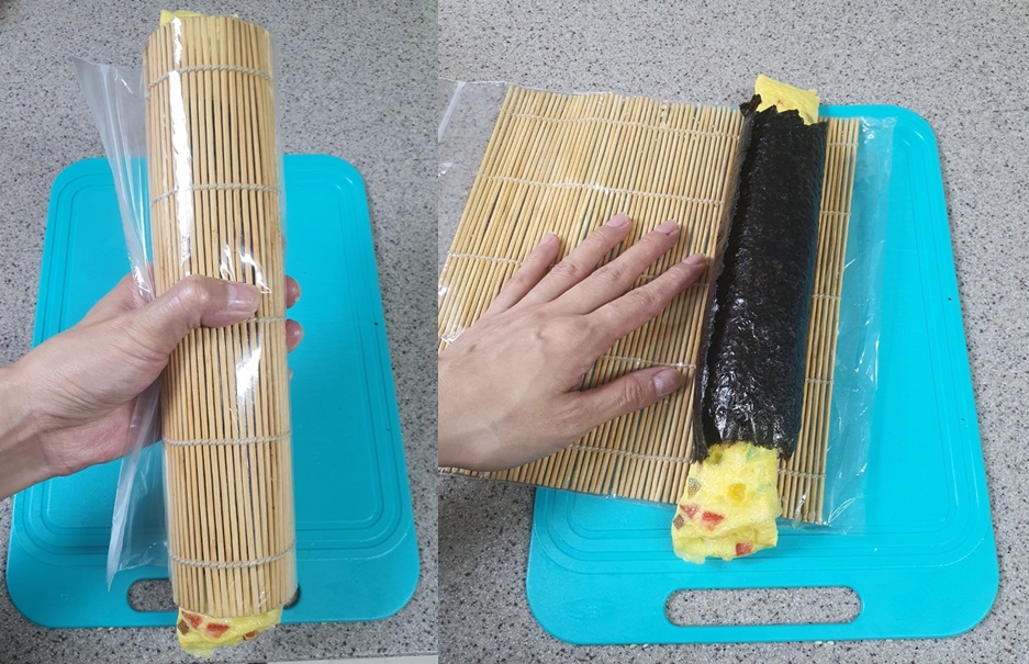 그리고 손으로 한번 김밥을 가볍게 싸 준 다음