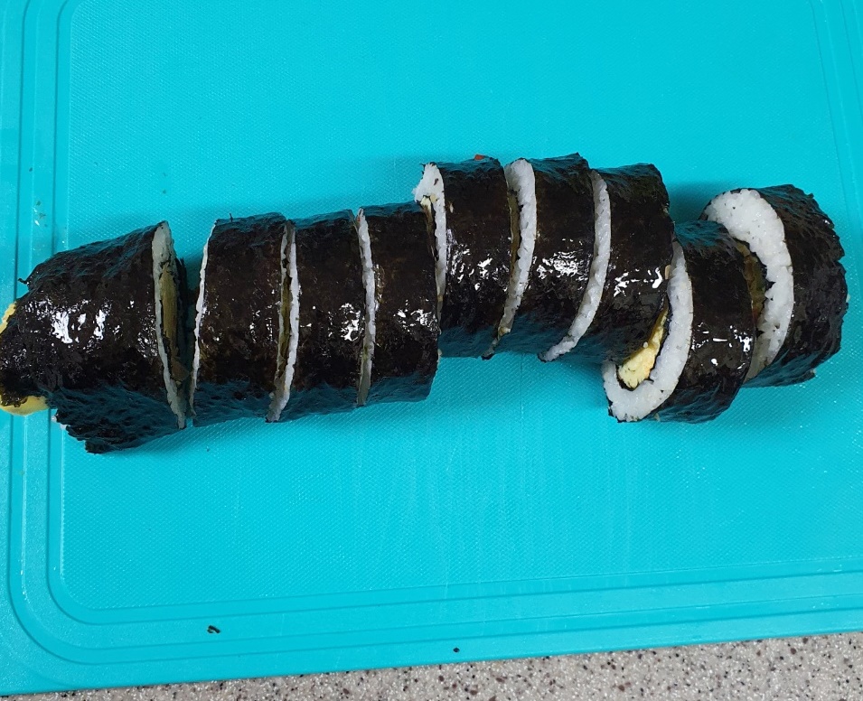 저는 이번에 불에 달궈서 김밥을 썰어주었습니다.