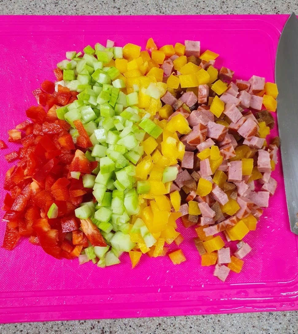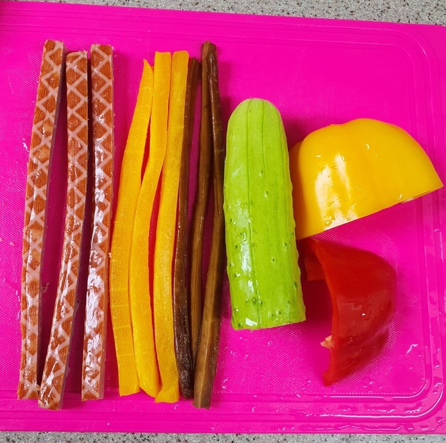 저는 햄, 단무지, 우엉, 오이, 파프리카를 준비했는데요.