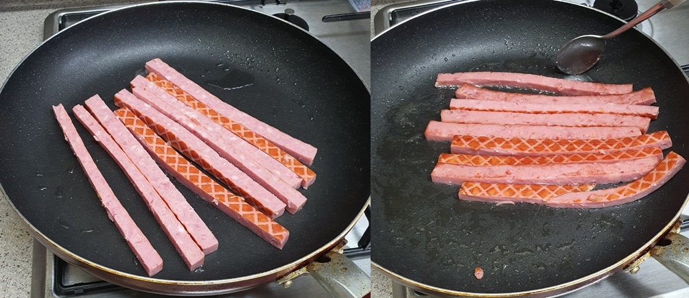 햄은 기름 두른 프라이팬에