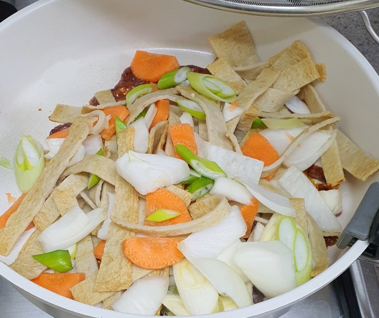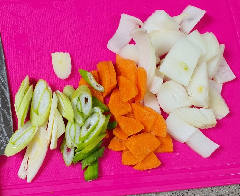 대파와 당근, 양파도 한 입 크기로 썰어주세요.