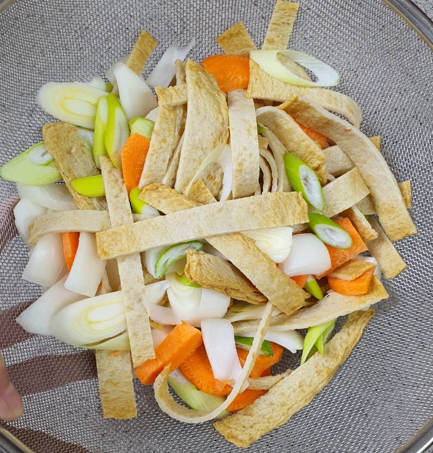 썬 재료는 오뎅과 함께 소쿠리에 담아줍니다.