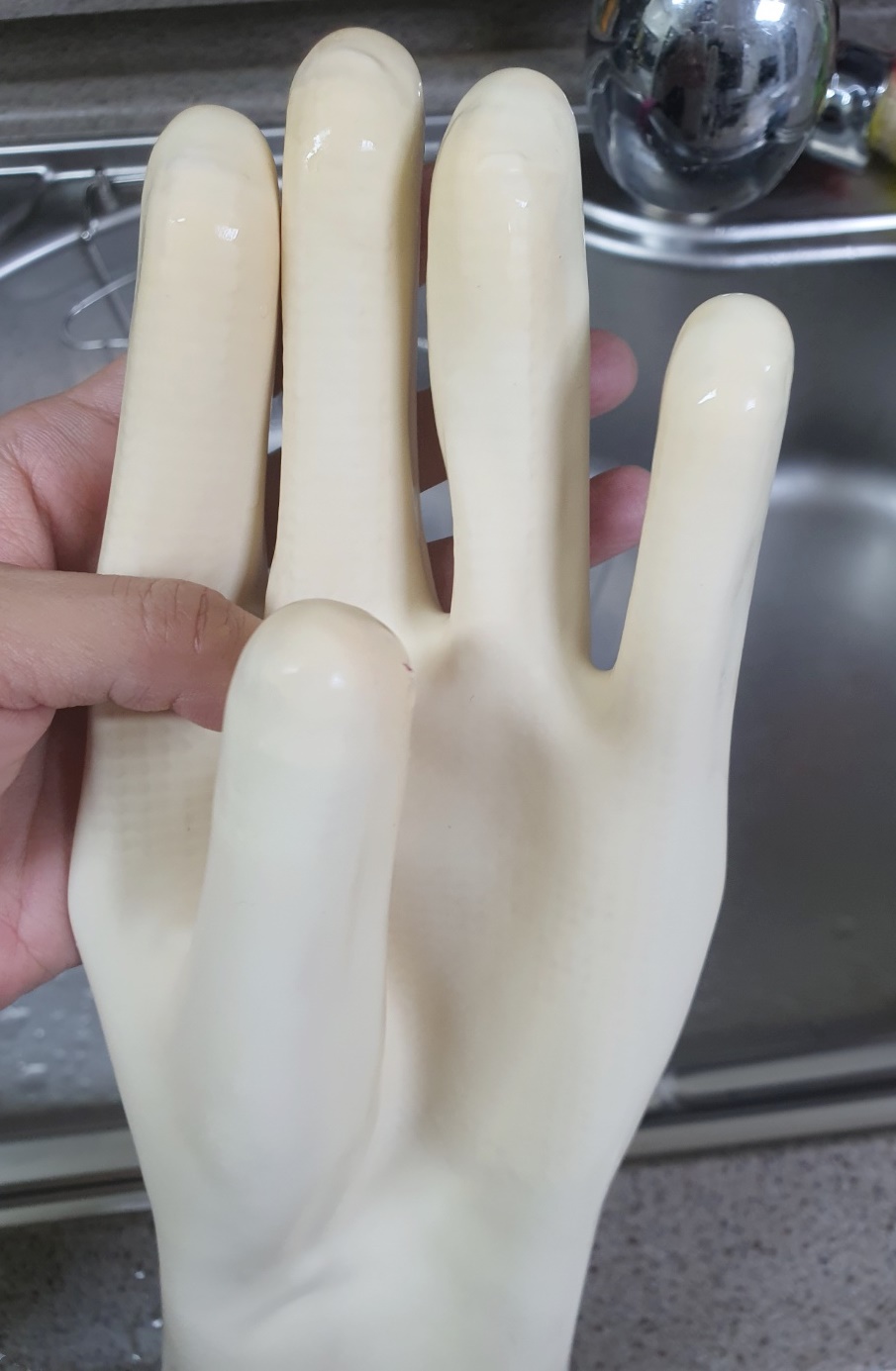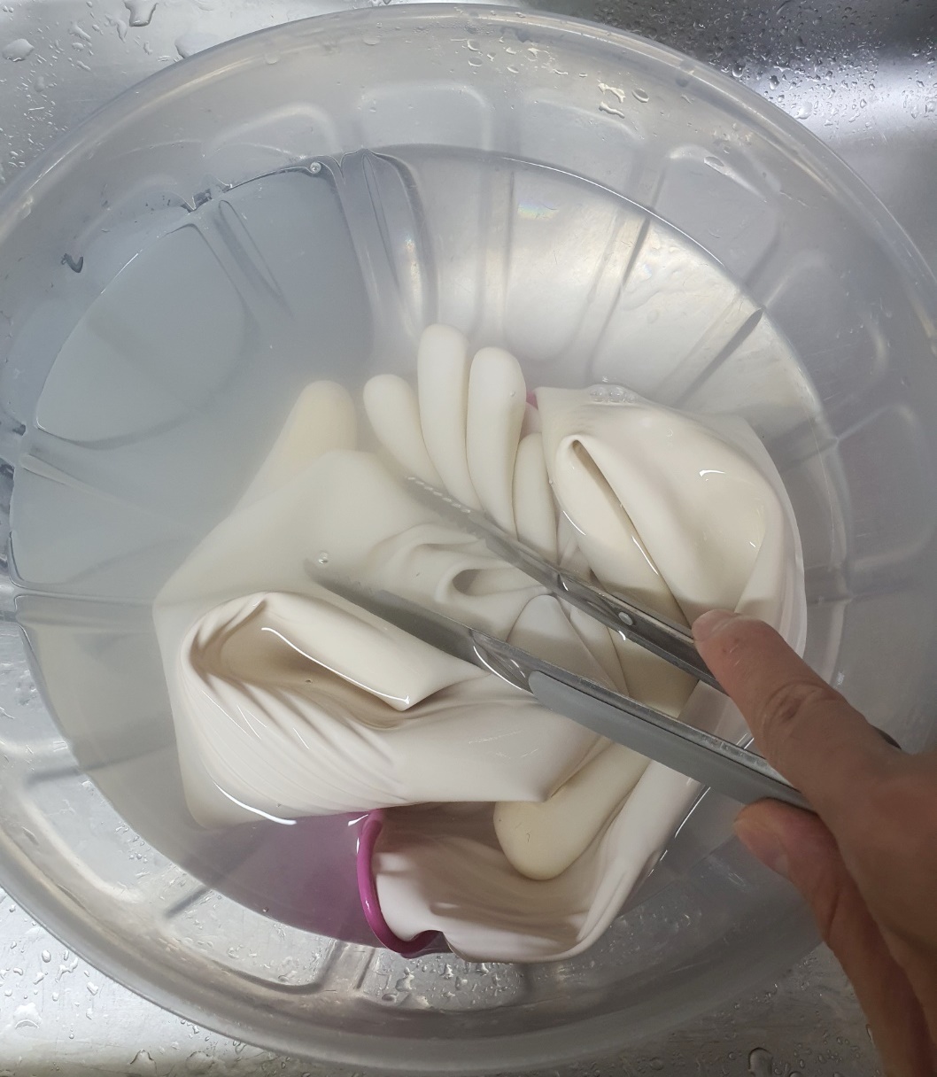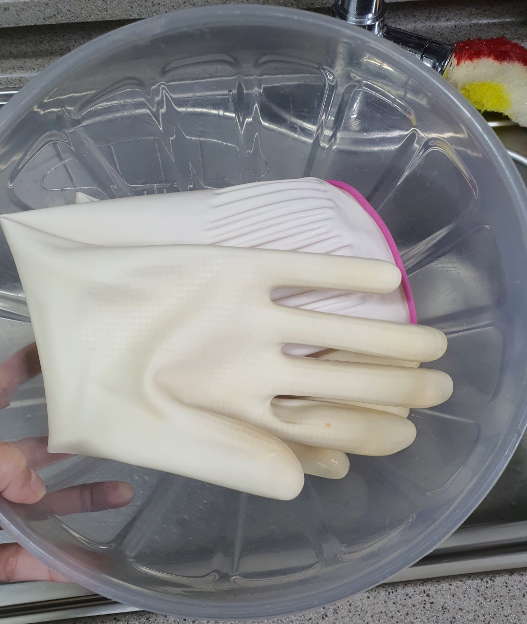 뒤집은 고무장갑을 볼에 담아줍니다.