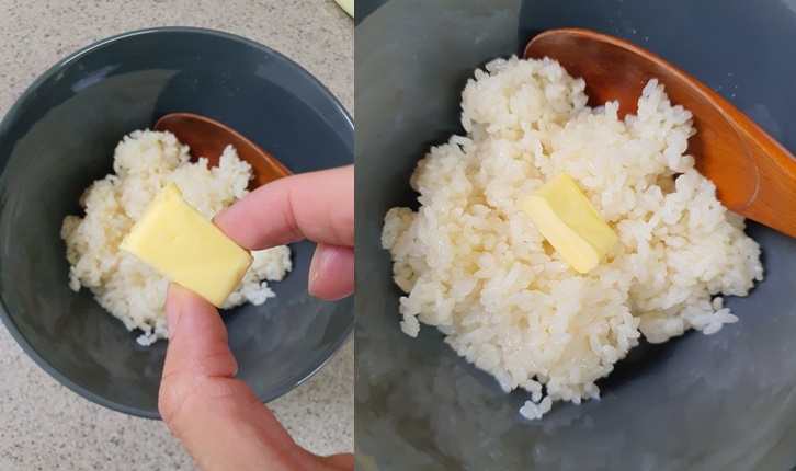 밥에 버터 한 조각 넣어주세요.