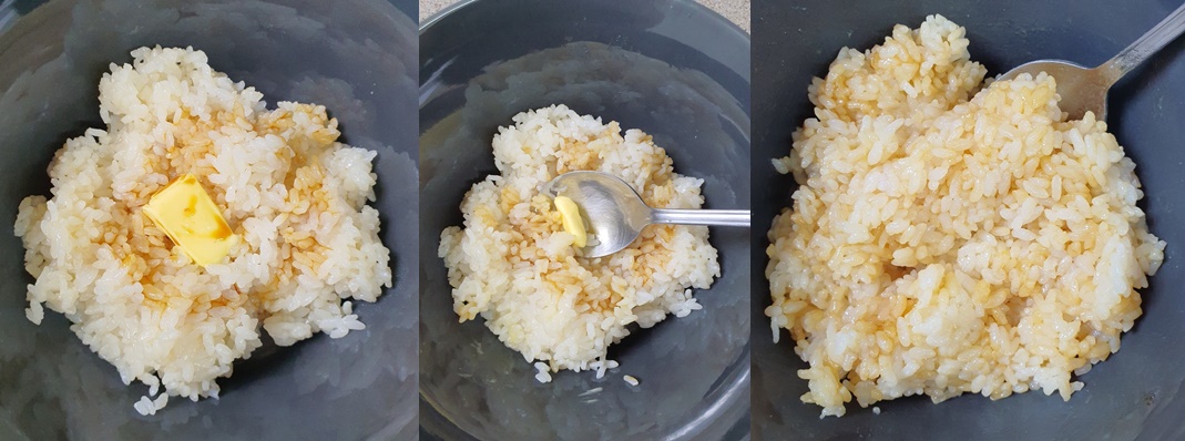 밥에 버터 한 조각 넣어주세요.