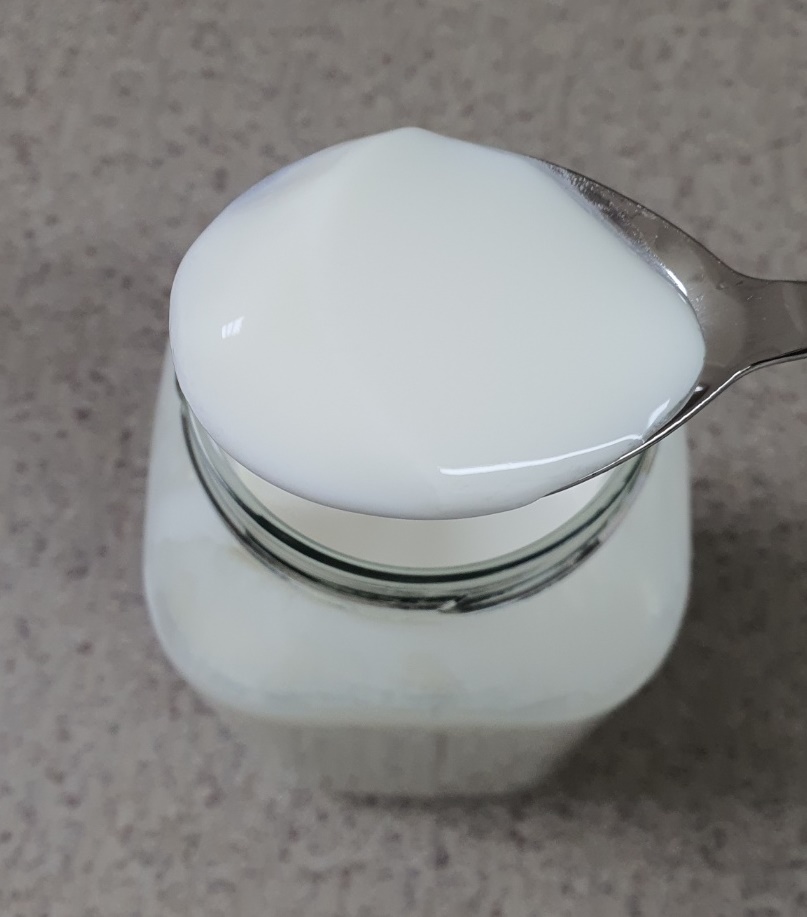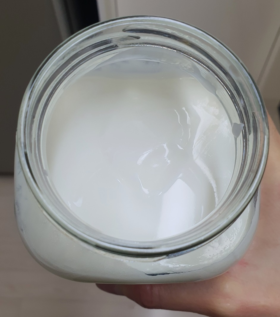 뚜껑을 열어보면 이렇게 꾸덕하게 플레인 요거트가 완성되었습니다.