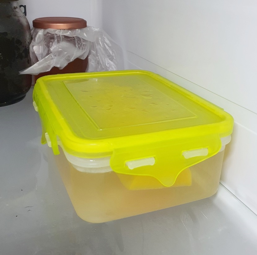 저는 뚜껑을 닫아 통을 흔들어 설탕을 녹여 주었습니다.