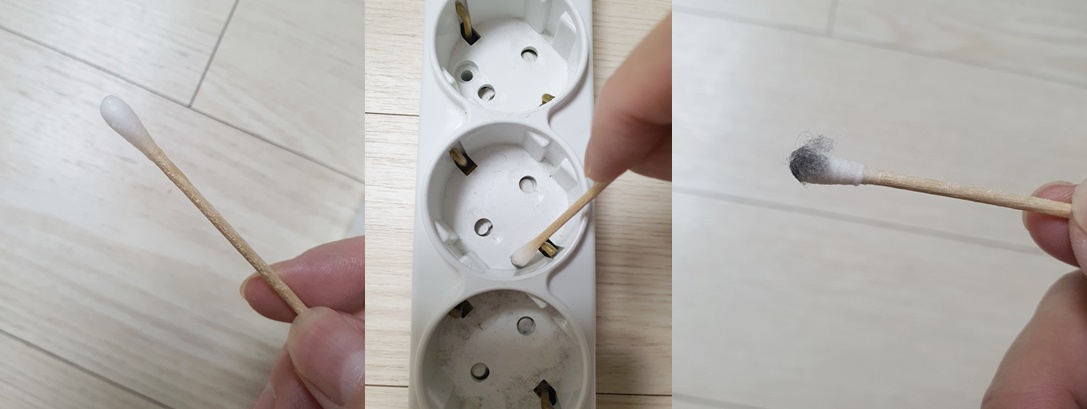 멀티탭 안쪽에 먼지를 훑어가며 가볍게 닦아주세요.