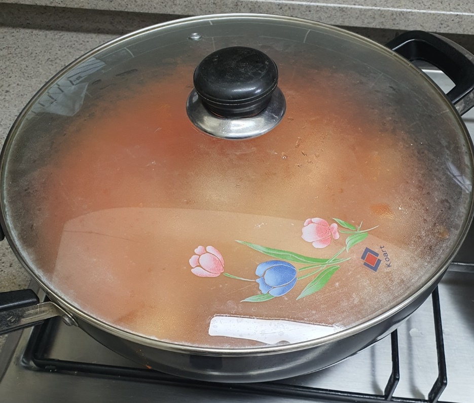 8. 15분 후 냄비 뚜껑을 열어서