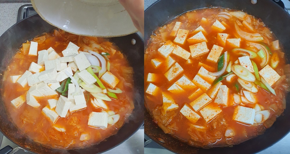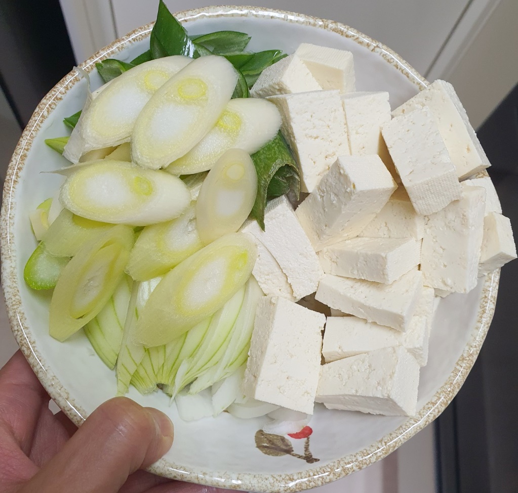 12. 간을 다 맞췄다면 두부와 대파를 넣어주세요.