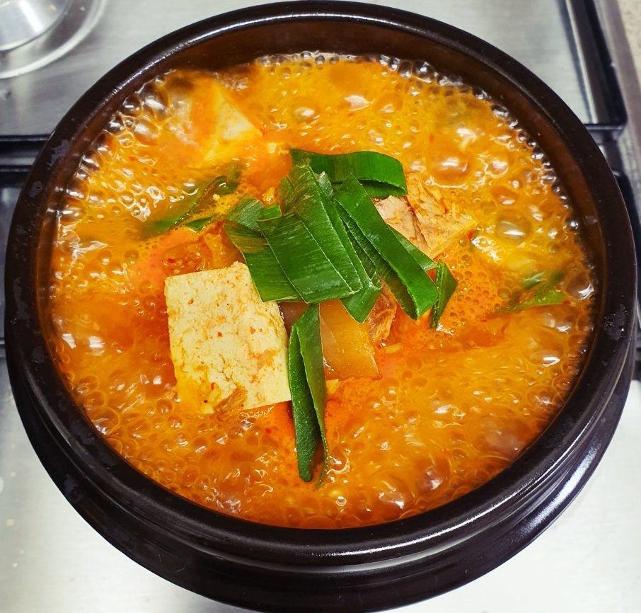 식당 참치찌개가 완성되었습니다.