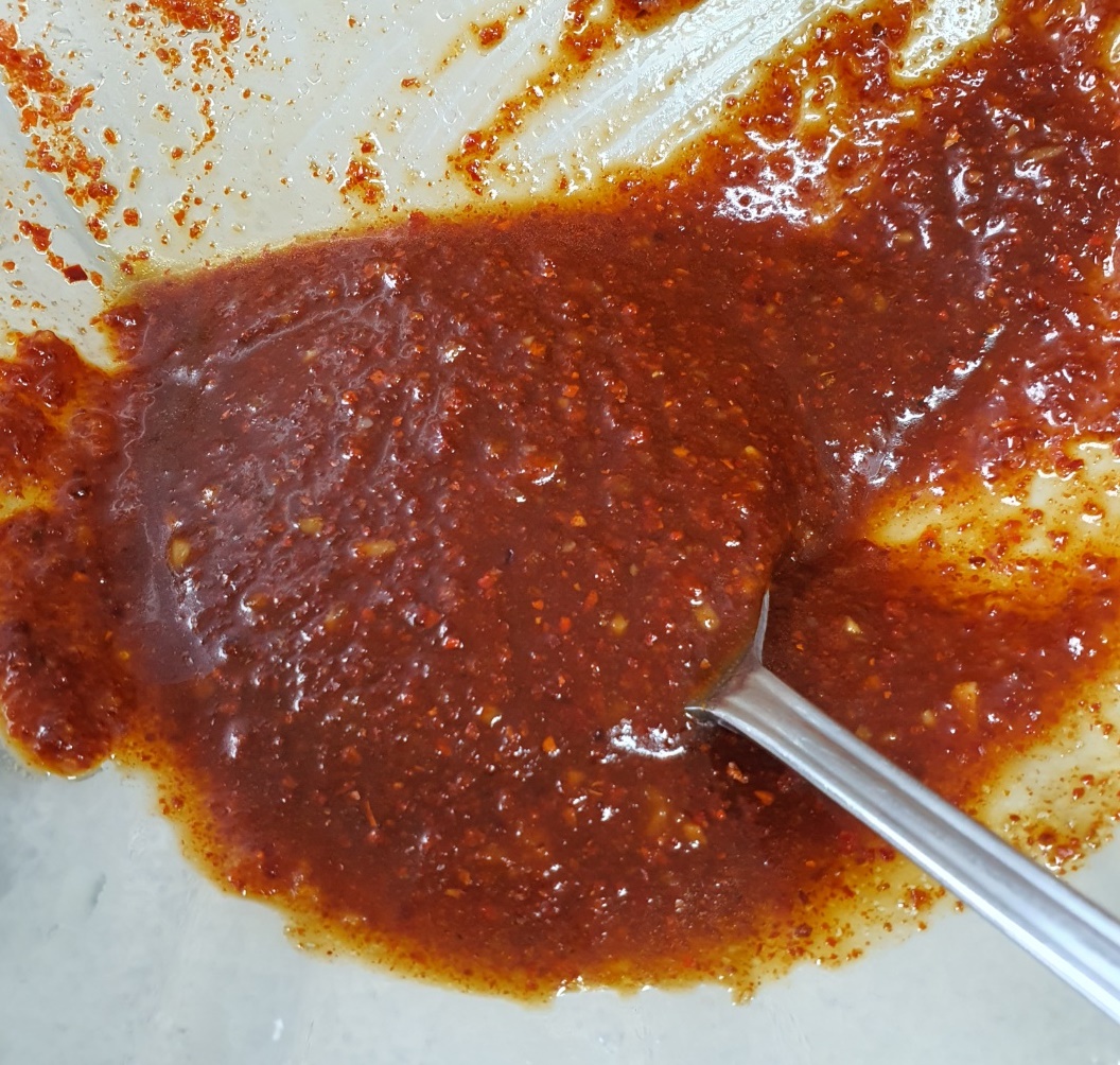 ▶ 고춧가루 3T, 진간장 3T, 설탕 2T, 맛술 2T,