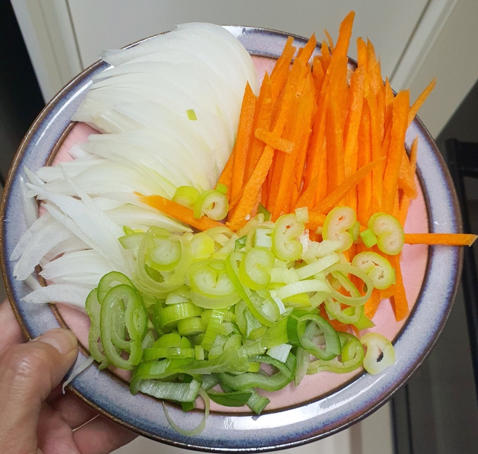 당근과 양파는 채 썰고 대파도 넉넉히 썰어서 준비합니다.