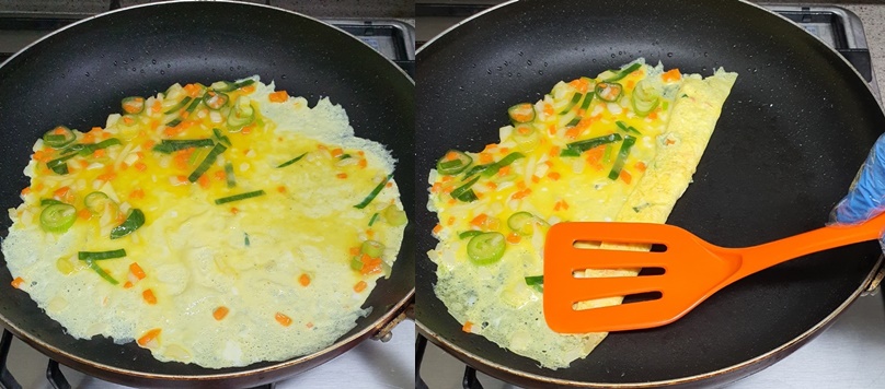 원하는 두께만큼 계란을 말아주세요.